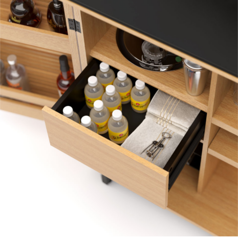 The Corridor Bar is the an ideal place for mixing drinks and cleans up easily long after the party ends.