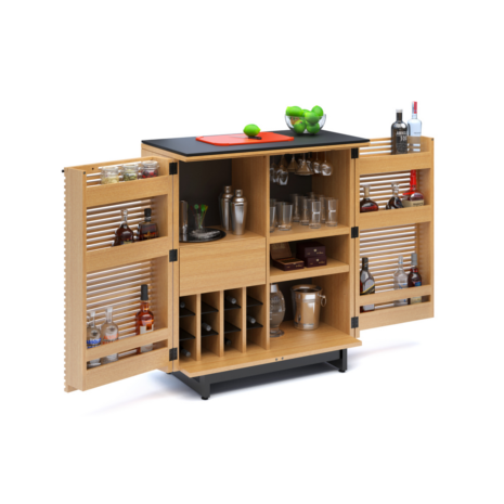 -- The double louvered doors open fully, providing easy access to everything that a stocked bar needs.