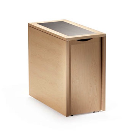 -- Concealed storage accessible from lift-up top and pull-out drawer.