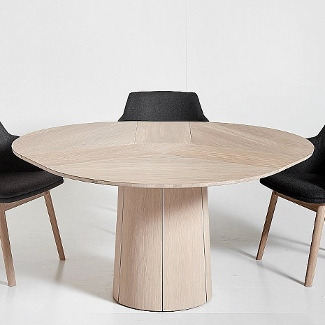 -- By turning the plate under the tabletop, the three leaves are magically revealed.