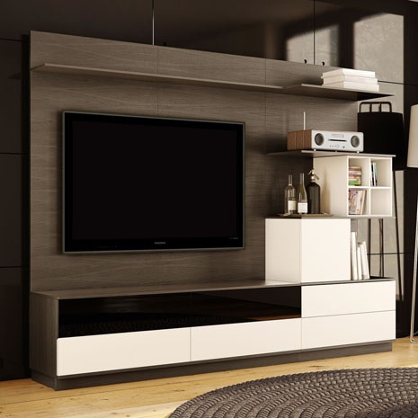 Portia is a wall unit designed to be customized for virtually any space, small or large. With a vast selection of wood finishes and solid lacquer colors to choose from, the possibilities are endless.