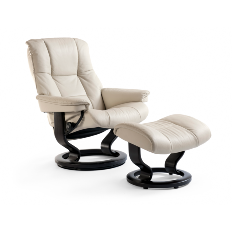 Contact us for Current Promotion. Inspired by London’s most chic address, the Stressless Mayfair recliners are as sleek as their name suggests. This Mayfair delivers all of the comfort you would expect from Stressless with all of the style you would expect from the British capital. Complete your room with coordinating Windsor and Buckingham sofas and chairs. — Full 360° swivel feature. — Employs the Stressless patented Glide® system that make Stressless recliners the most comfortable in the world. — The distinctive Stressless Plus® System interprets your body’s movements as you change positions to provide increased lumbar reinforcement. — Cold-cured Foam is molded directly over the steel frame with perforated air pockets. — A second layer of Polyester Foam is fashioned on top to form the most comfortable and ventilated seat possible. — Available in Small, Medium, and Large sizes. The Mayfair Recliner offers incredible comfort in your choice of Performance Fabrics or Top-grain Leathers. Design your own from a range of Sizes, Colors, Base Styles, and Wood Finishes. Designed, Quality-crafted, and Made To Order in Norway. You can also choose from a selection of Quick-ship Leathers.