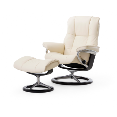 Contact us for current promotion. Inspired by London's most chic address, the Stressless Mayfair recliners are as sleek as their name suggests. This Mayfair delivers all of the comfort you would expect from Stressless with all of the style you would expect from the British capital. Complete your room with coordinating Windsor and Buckingham sofas and chairs. — Full 360° swivel feature. — Employs the Stressless patented Glide® system that make Stressless recliners the most comfortable in the world. — The distinctive Stressless Plus® System interprets your body’s movements as you change positions to provide increased lumbar reinforcement. — Cold-cured Foam is molded directly over the steel frame with perforated air pockets. — A second layer of Polyester Foam is fashioned on top to form the most comfortable and ventilated seat possible. — Available in Small, Medium, and Large sizes. The Mayfair Recliner offers incredible comfort in your choice of Performance Fabrics or Top-grain Leathers. Design your own from a range of Sizes, Colors, Base Styles, and Wood Finishes. Designed, Quality-crafted, and Made To Order in Norway. You can also choose from a selection of Quick-ship Leathers.