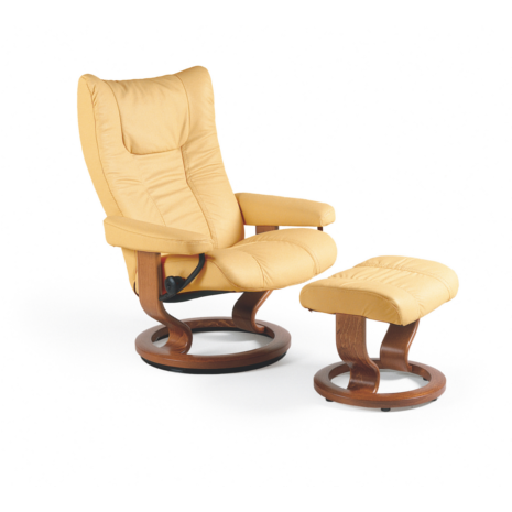 Introduced in 1994, the Stressless Wing Recliner is among our most popular designs. Luxurious, with modern/transitional styling, this collection appeals to those with a classic sense of style.