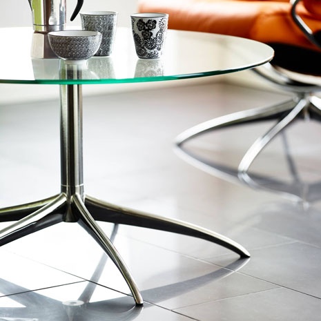 The contemporary Stressless Urban glass table gives you a timeless design to fit your new Stressless furniture or existing decor. Minimalist and modern, the glass and steel merges perfectly to accompany the elegant designs of Stressless chairs and sofas.