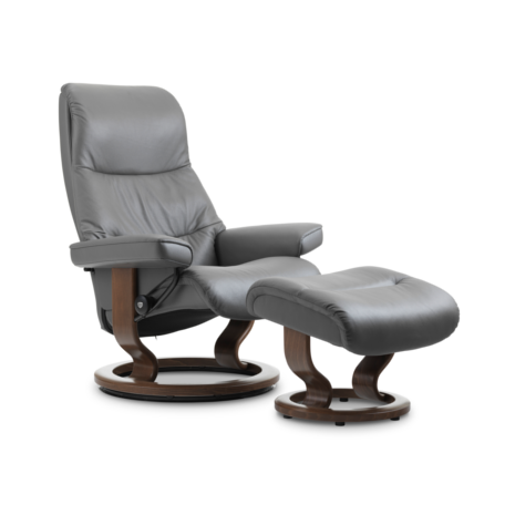 The view from the new Stressless View is something that needs to be experienced! Stressless View features soft padding and a timeless and contemporary cushion design with clean lines. This model has an extra tall and slender design that fits particularly well for those who like to stretch out. This model also features an elegant and comfortable headrest that can be adjusted for users of different heights to provide perfect support for the neck.