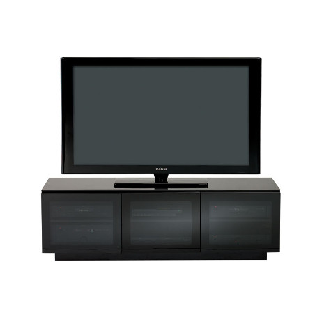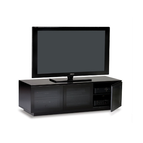 Please contact us for current promotions. The striking Corridor TV Cabinet features louvered doors that allow a speaker?s sound or a remote control?s signal to pass through unobstructed. -- The cabinet features three compartments to hold up to 12 components, each with an adjustable shelf. -- Top surface is black, micro-etched and tempered glass that provides a smooth and durable non-glare surface. -- Optional concealed wheels are included. -- Cable management. -- Flow-through ventilation. -- Removable, sliding back panel. -- Low-leg Kit available for additional purchase: 4.7`H (vs. 8.45`H standard) The Corridor is the perfect solution for your Flat Panel TV--it's stylish, functional, and accommodates most Center Channel Speakers. Designed in USA. Quality-crafted in China.