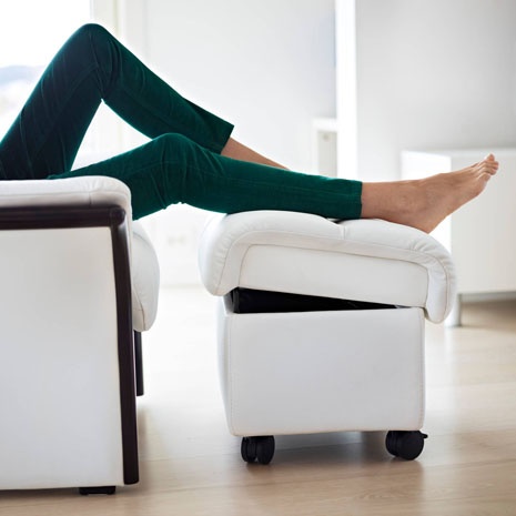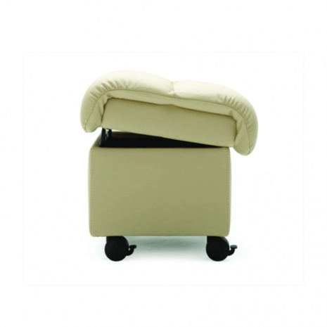 Our Stressless Soft Medium Ottoman is ingenious in two ways: It has a built-in tilt system, which makes sure the angle of the ottoman is adapted to your sitting position. It also has room for all the extras under its removable top. Rests on four lockable casters for easy movement.