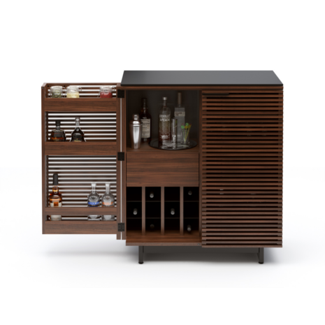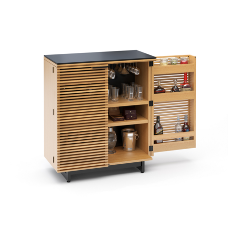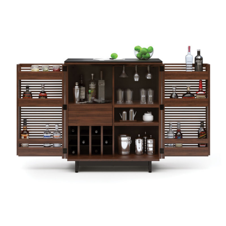 -- The double louvered doors open fully, providing easy access to everything that a stocked bar needs.
