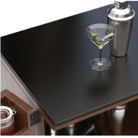 The Corridor Bar is the an ideal place for mixing drinks and cleans up easily long after the party ends.