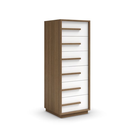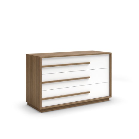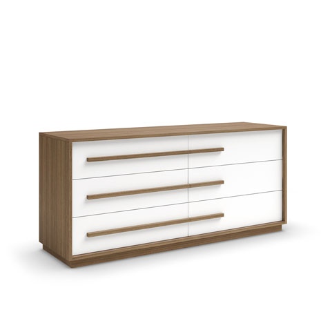 The Preben Dressers feature an asymmetrical handle design and sturdy cases. With its stunning angled headboard, the Preben Bed is proudly Made in Canada of wood veneers and solids. It's sure to create drama in your bedroom.